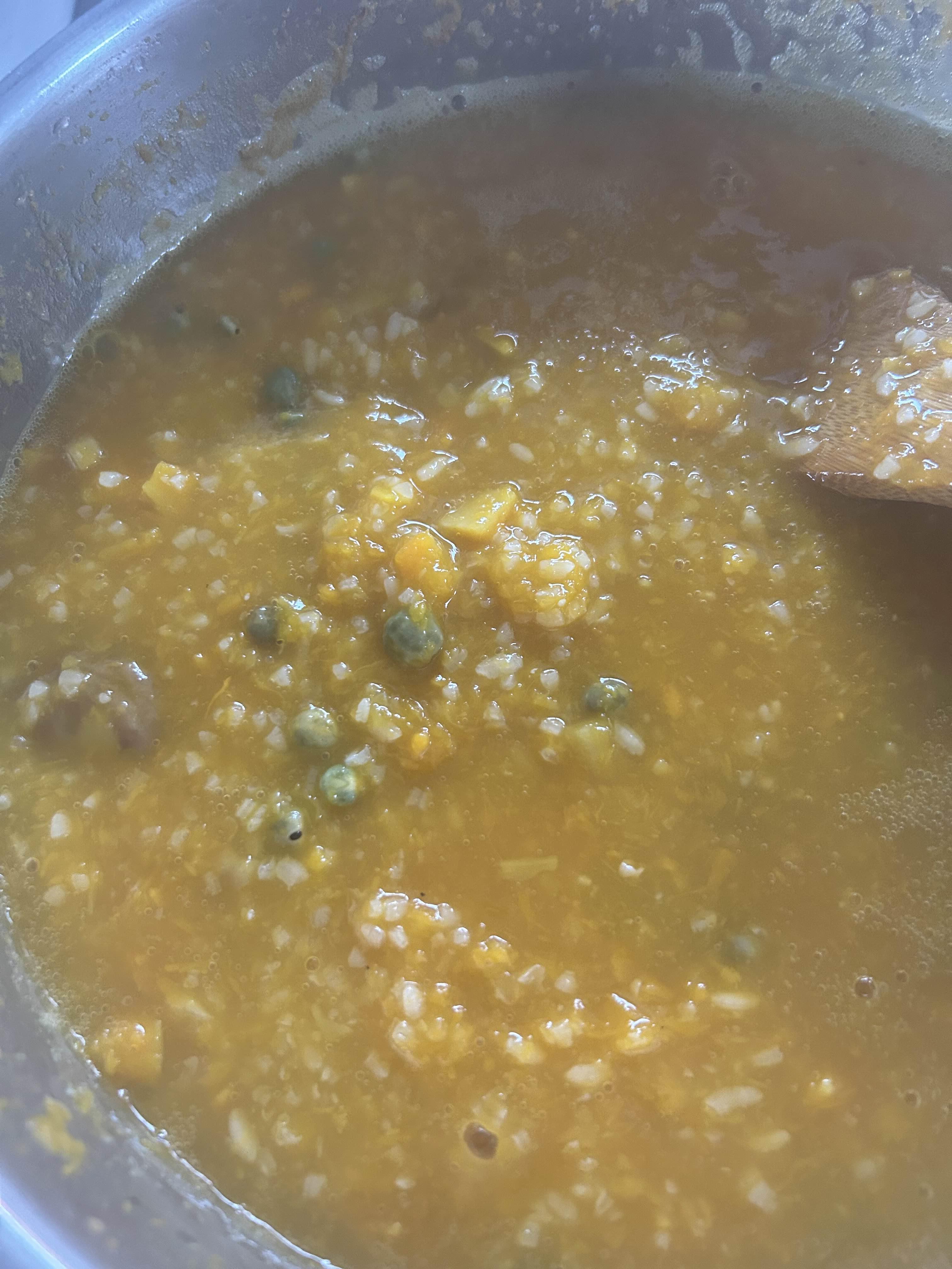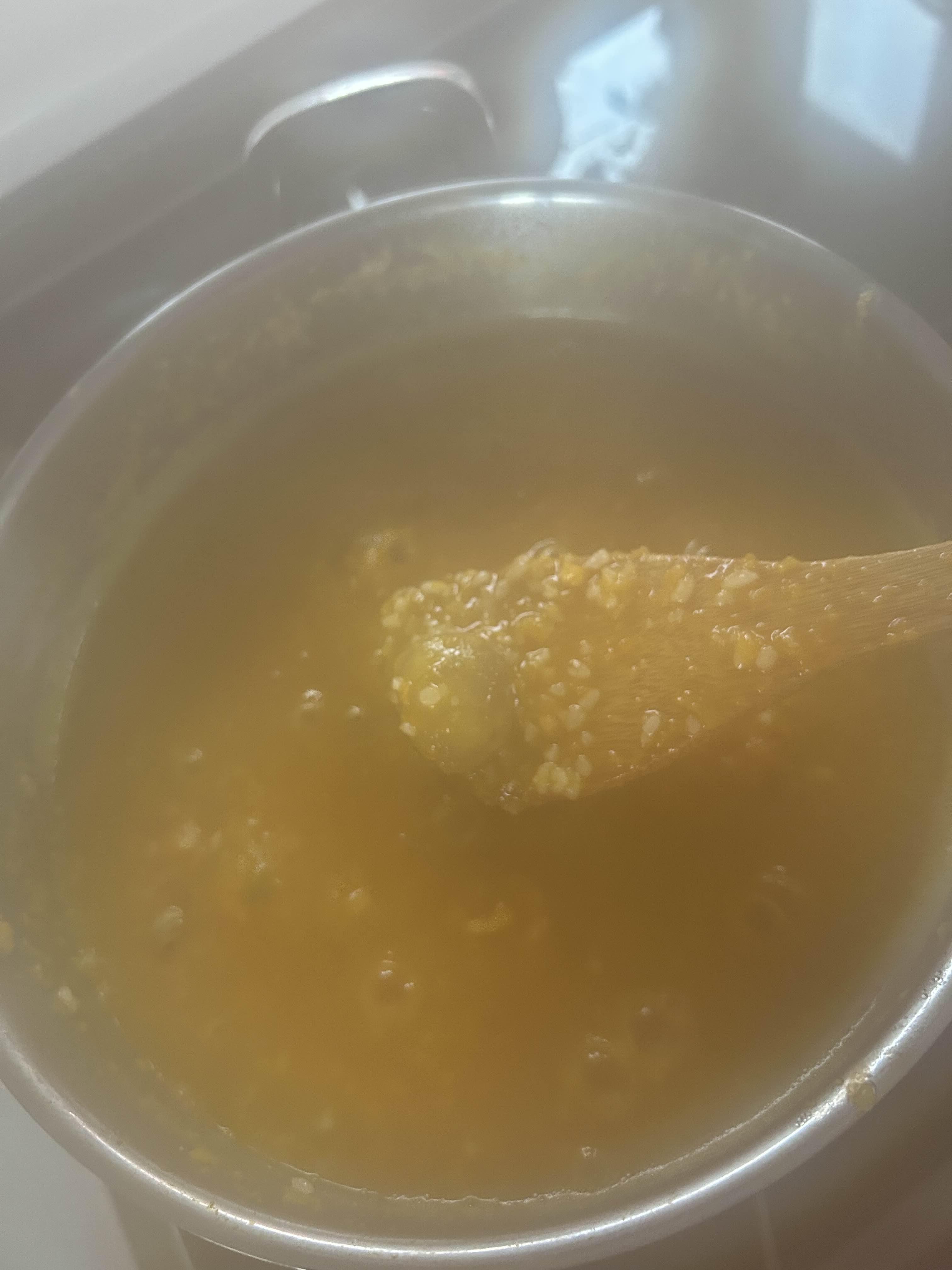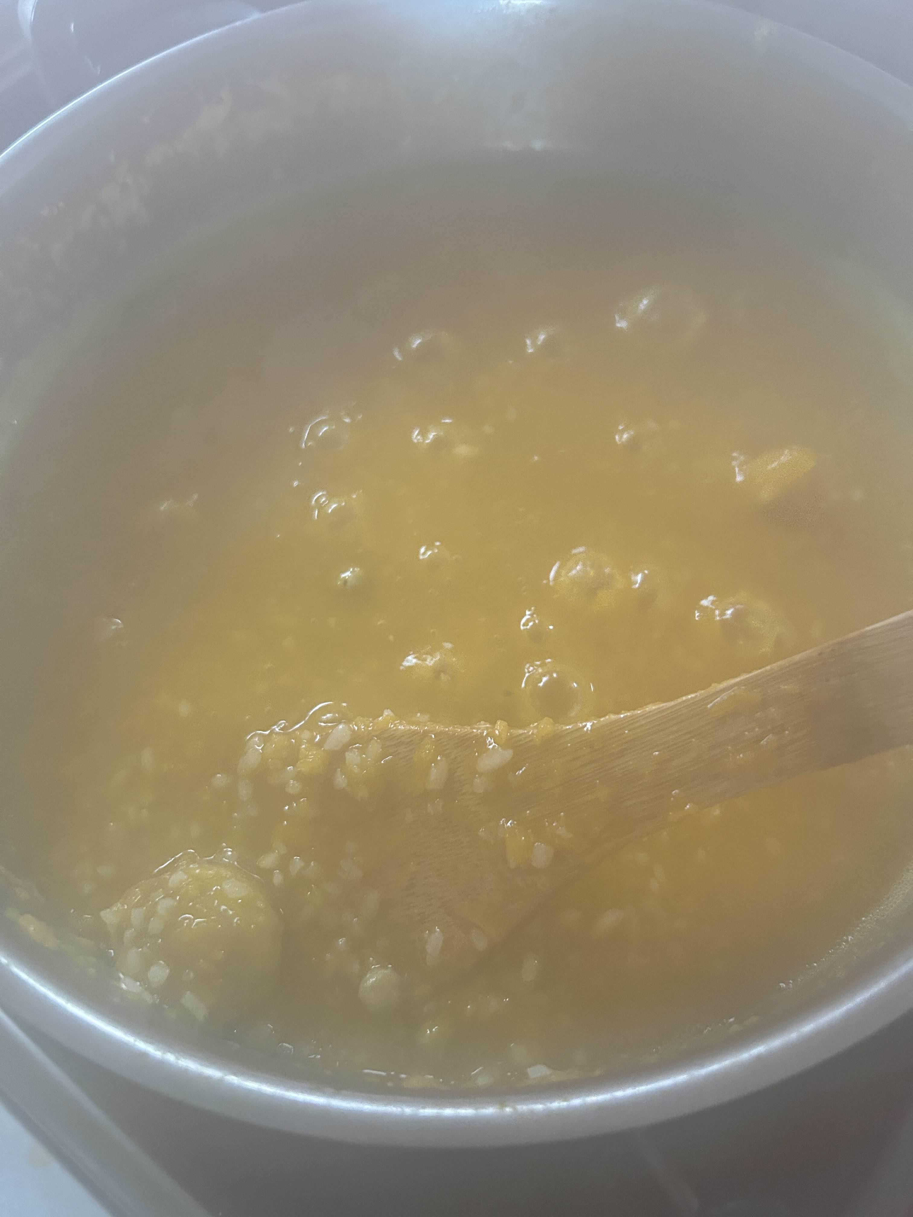 쌀이 불으니 금새 죽이 완성. 소금만 쪼금 넣어도 단호박이라 달작지근 당도가 적당하다.